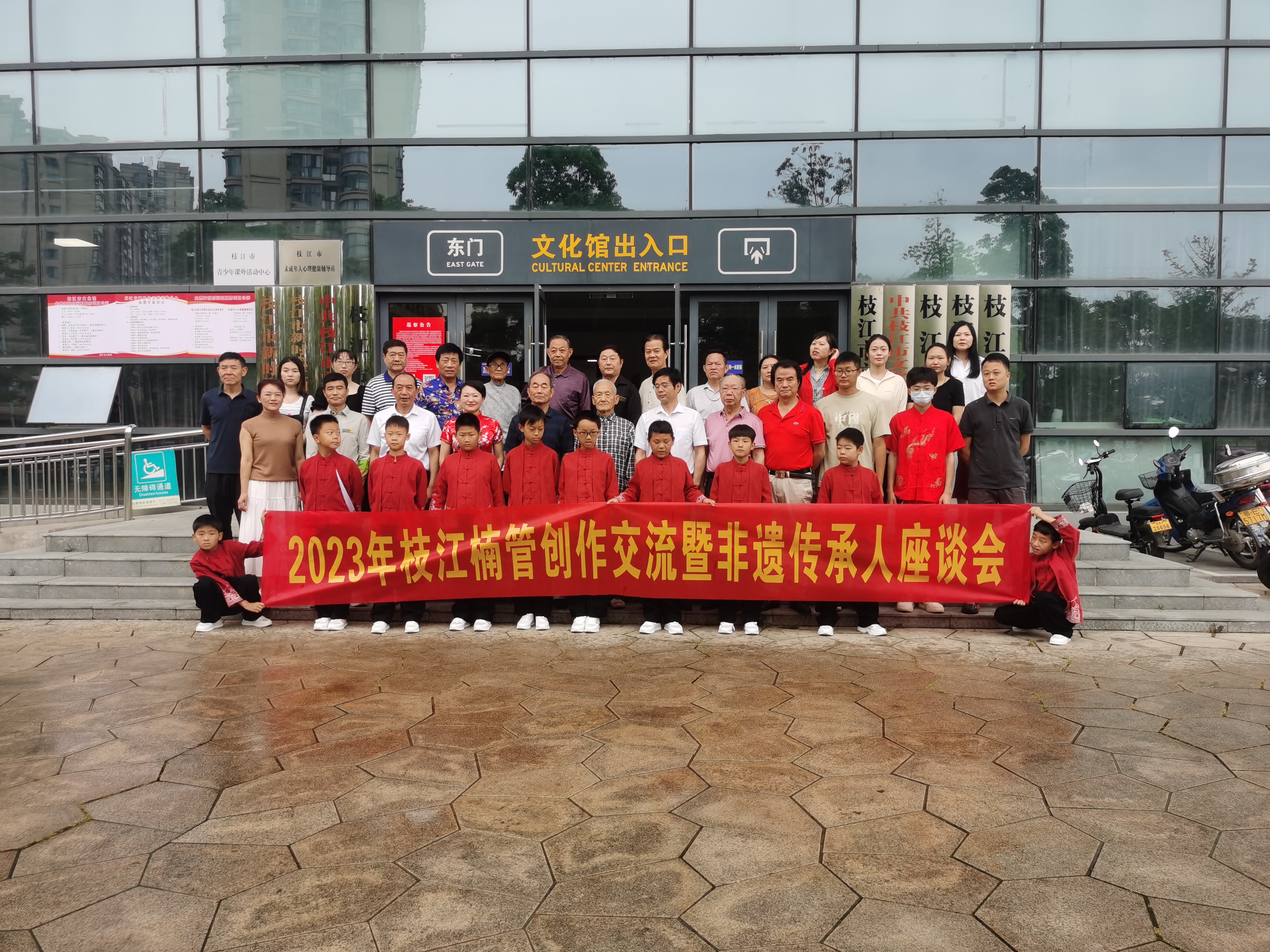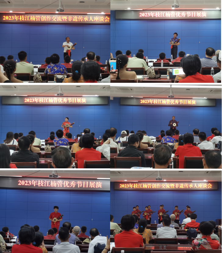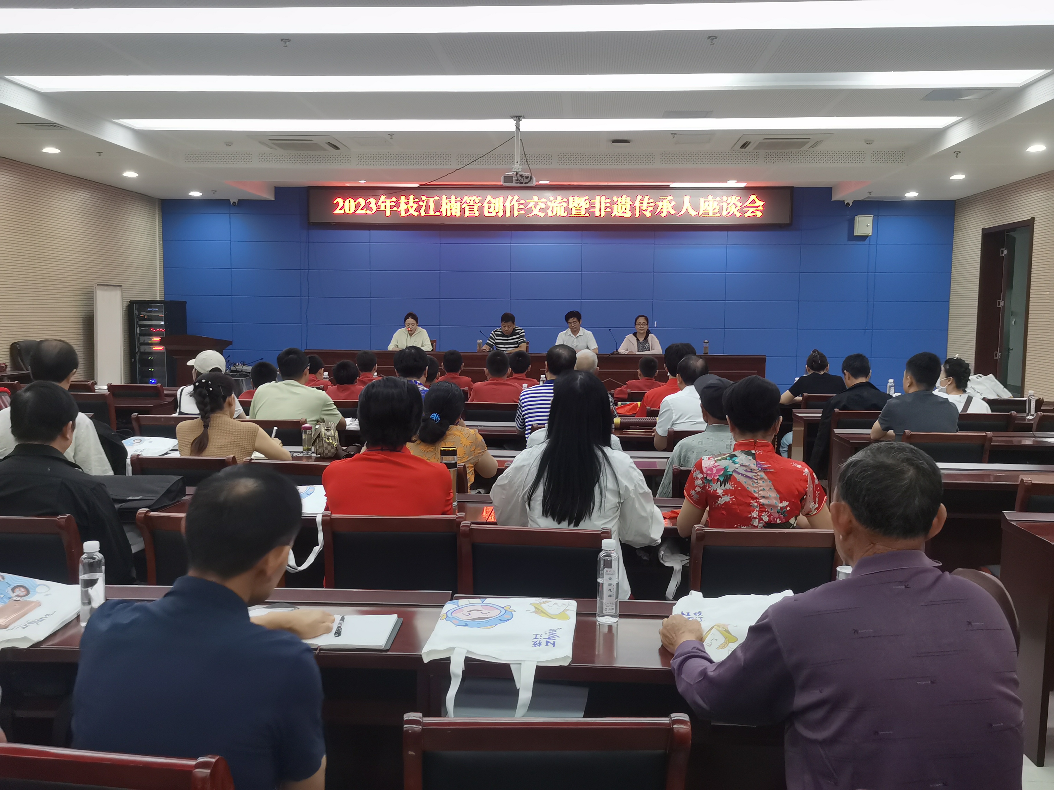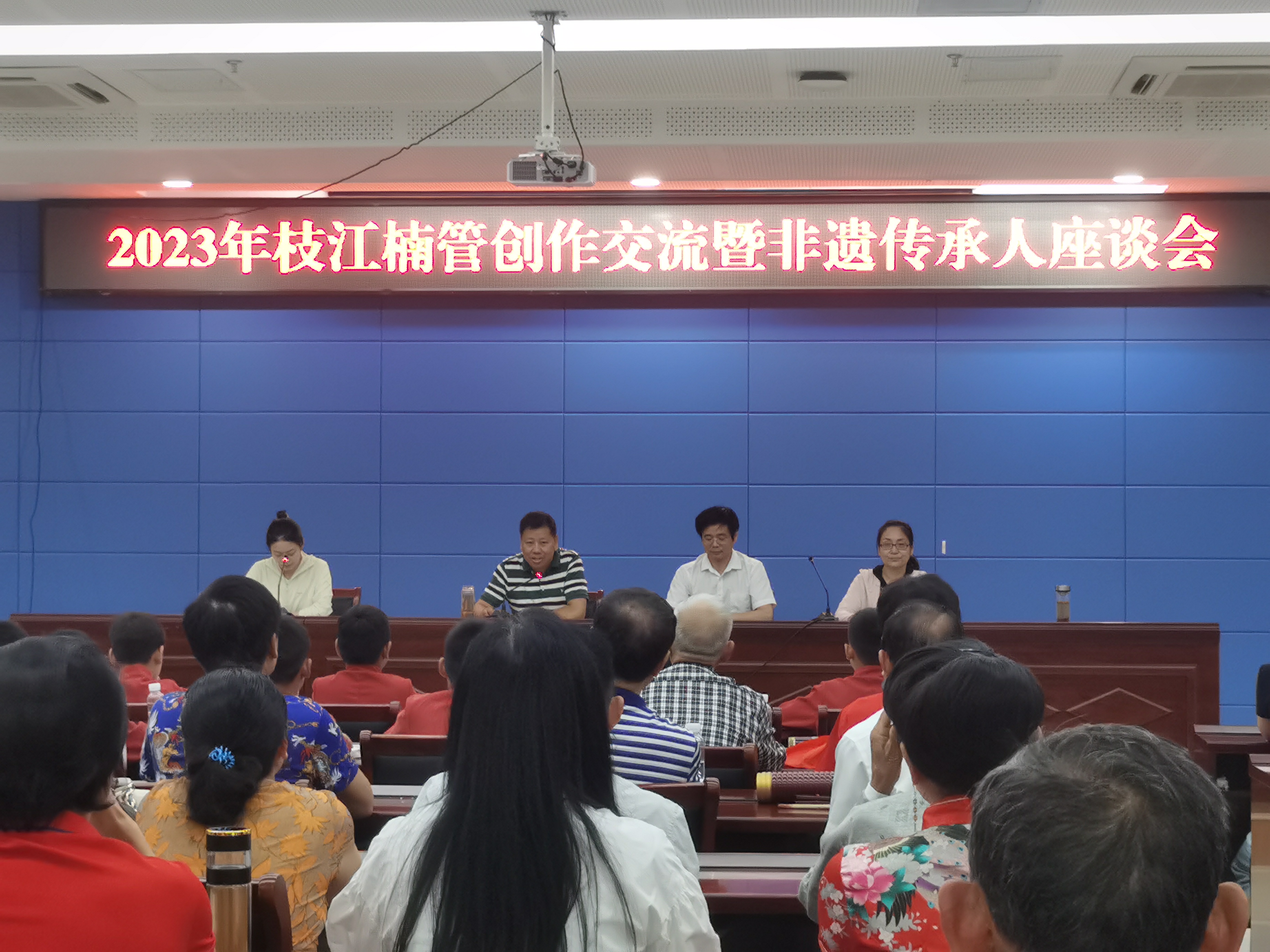6月16日,在2023“文化和自然遗产日”之际,枝江楠管创作交流暨传承人座谈会等系列活动在枝江文化馆举行。枝江市委宣传部、枝江市文化和旅游局等部门的领导、工作人员,枝江市镇(街道)文化中心主任、关庙山文学社作家代表,枝江楠管第四、五、六代代表性传承人、问安小学(楠管)学生,以及枝江楠管创作人员等50余人参加活动。