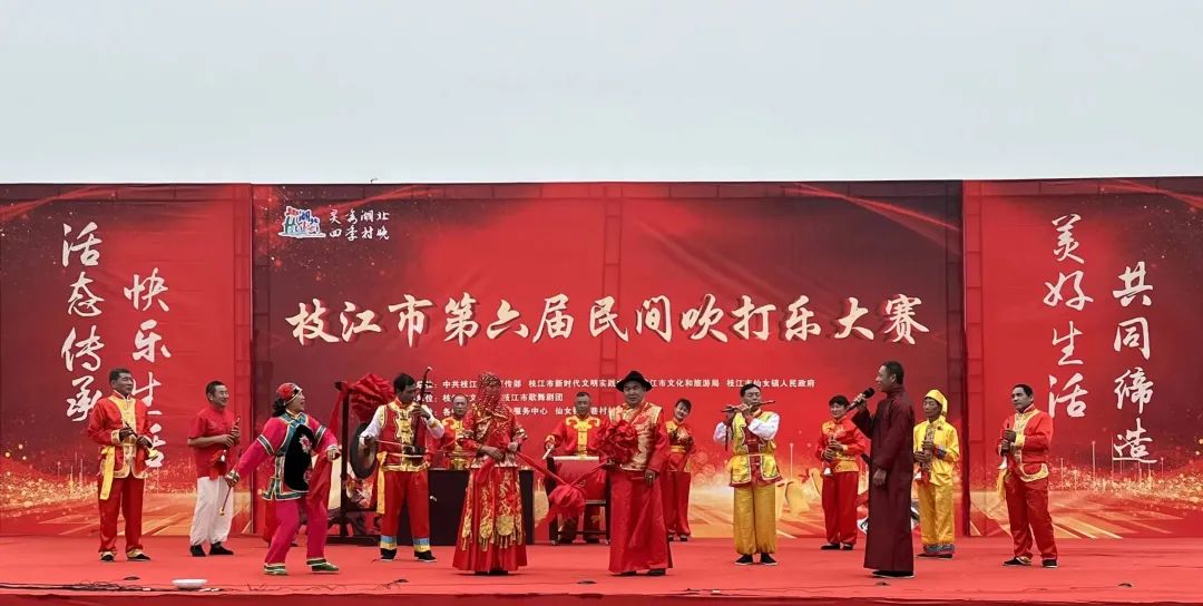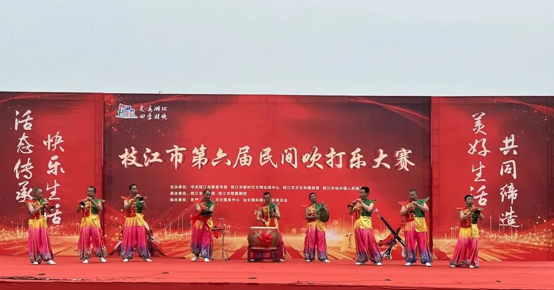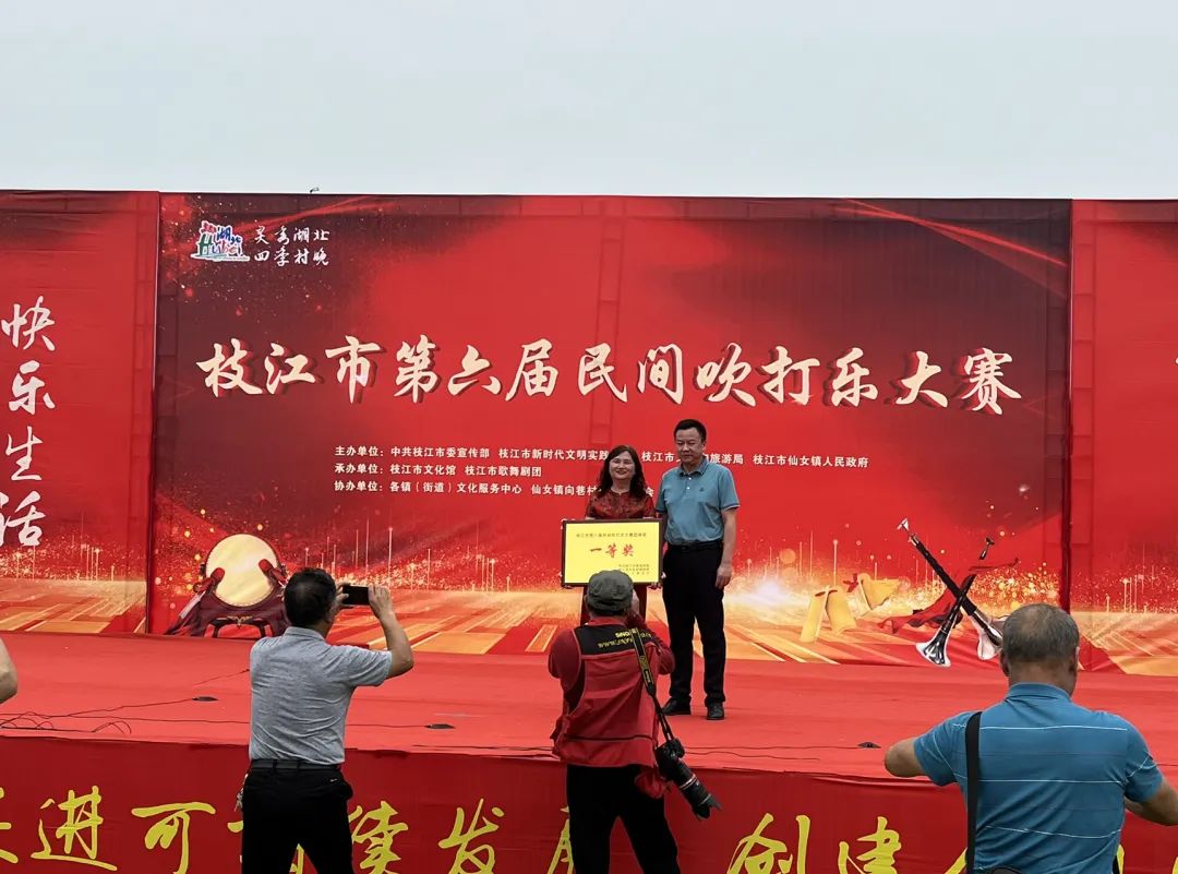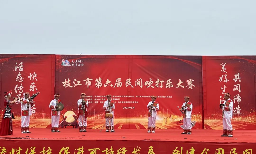 为进一步丰富我市群众文化生活,提升人民艺术品位,弘扬传承和发展枝江特色非物质文化遗产,创建特色鲜明、资源丰富、保障有力、充满活力的“中国民间文化艺术之乡”,打造具有枝江地域特色的文化品牌。5月25日,由中共枝江市委宣传部、枝江市新时代文明实践中心、枝江市文化和旅游局、仙女镇人民政府主办;枝江市文化馆、枝江市歌舞剧团承办的“活态传承 快乐生活”枝江市第六届民间吹打乐大赛在仙女镇向巷村吉吉主题公园隆重举行。